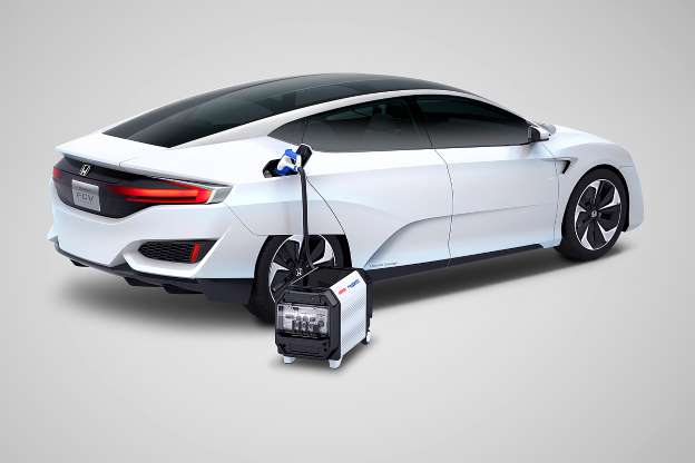 Honda為FCV概念車設置電源輸出座,搭配專用的外部供電裝置,可以在緊急狀態化身為移動發電機。