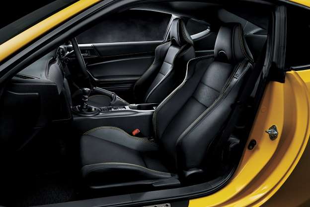 內裝部分同樣以黑色為基調,但換上兩張用Alcantara皮革搭配一般皮革包覆的跑車座椅;此外,車內有皮革包覆之處,包含座椅、方向盤、門板、中控台、排檔頭及手煞車拉柄等處,都使用黃色車縫線妝點,讓車內呈現出有別於一般版86的氛圍。