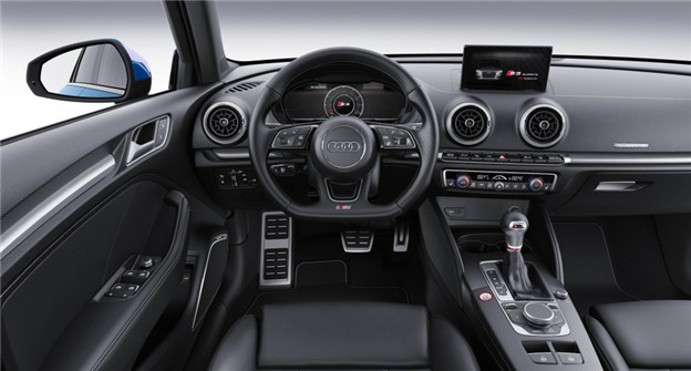 內裝方面在 A3 車系的基礎上添加了 S3 專屬套件,包括跑車型前座椅、三輻式真皮多功能方向盤、專屬鋁合金門檻/踏板以及 S 專屬排檔座,呈現出濃濃的跑車氣息;不過最搶眼之處莫過於標配的 12.3 吋 Virtual Cockpit 虛擬儀表板,提供豐富行車訊息並有專屬儀表畫面,還能與 7 吋 MMI Navigation plus 多媒體系統的中文衛星導航、Apple CarPlay 等功能連結,此外還配備 Bang & Olufsen 音響系統與全景玻璃天窗。
