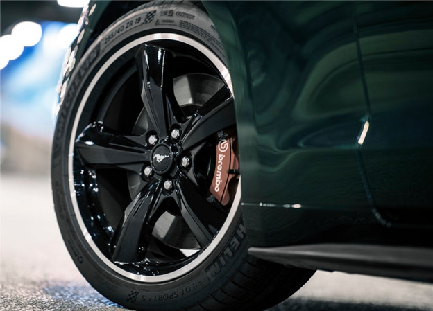 在整體塗裝、細節重現經典之餘,外觀配備 Mustang GT Premium 與 Performance Package 帶來的空力套件則增添不少兇悍氣息,且足下 19 吋黑色五輻輪圈內藏的紅色 Brembo 卡鉗,則告訴外界這依就是輛性能不俗的 Mustang GT!