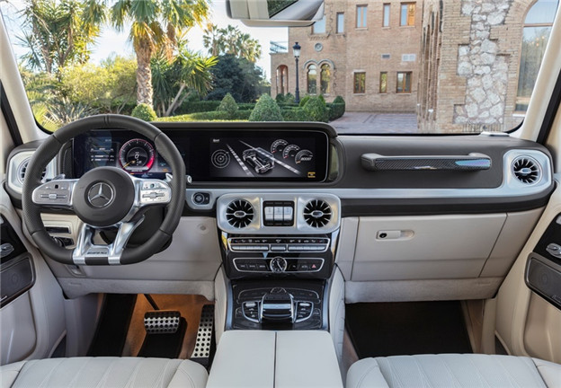 全新G-Class的一大重點,莫過於內裝質感全面提升,強調在越野風味出眾的前題下,也能享受最舒適的氛圍,而晉升純正AMG車格,除了原本就有的12.3吋數位座艙界面之外,也改用全新AMG Performance方向盤增添性能氛圍,周邊飾板點綴也改由碳纖維材質,與其粗曠的風格匹配。
