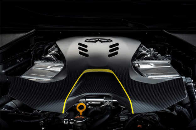 結合3.0L V6雙渦輪增壓引擎,輸出達400hp/48.4kgm,另搭配3具MGU(Motor Generator Gnit)所構成的ERS 動能回收系統,可再提供額外41%的動力輸出,達到綜效馬力563hp水準,讓Q60 Project Black S僅需不到4秒即可從靜止加速至100km/h。