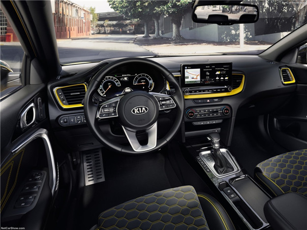 車室鋪陳同樣有著年輕風格,中控台朝向駕駛傾斜,以駕駛為導向的設計在此展露無疑。中控台搭觸控螢幕資訊娛樂系統,介面簡單乾淨,螢幕下方按鍵為觸控操作,延續螢幕控制的手感,方便駕駛開車時操作。此外,Xceed還可以選配12.3吋全數位液晶儀表,提供駕駛更多行車資訊。搭載的UVO Connect多媒體介面附Kia Live功能,能透過內建eSim與行動網路連線,即時下載路況、天氣預報、停車空位….等資訊。