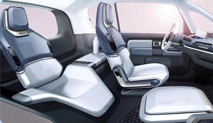 車內空間方面,得益於純電動的平台和四輪四角的設計,寶駿E300/E300PLUS的空間利用率很高,由於沒有傳統的發動機變速箱,同時採用後置後驅動力佈局,駕駛艙就可以進一步前移,使得車內空間利用最大化,上下班通勤、休閒購物、接收孩子均能夠勝任。新車擁有兩座、三座、四座共三種內艙佈局,其中三座設計的副駕駛座椅可折疊,與後排連同能形成一個很好的休息空間。