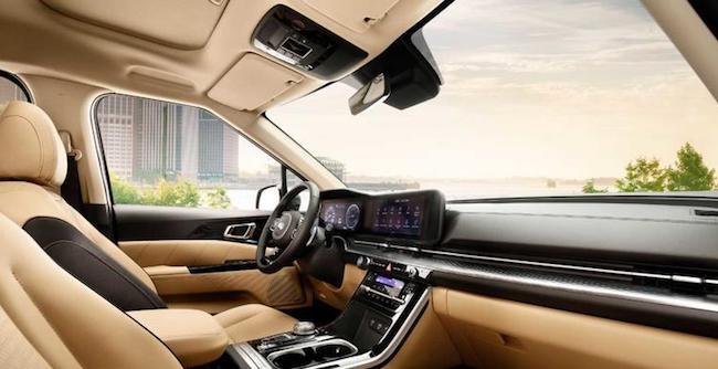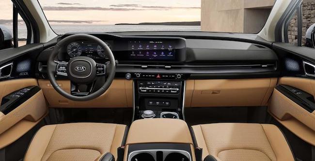 內飾設計方面,KIA期望通過一系列高科技功能使得其使用起來輕松便捷,新車在互聯能力,安全保護和車載娛樂方面為駕駛員提供支持。新壹代CARNIVAL使用了壹體式雙12.3英寸液晶屏設計,二者放在壹塊無縫玻璃下,雙屏顯示提供了高級感十足的寬屏體驗。空調控制區現在使用的觸摸控制面板。新的信息娛樂系統可支持藍牙同時連接兩部智能手機,從而將用於電話或媒體的智能手機分開。