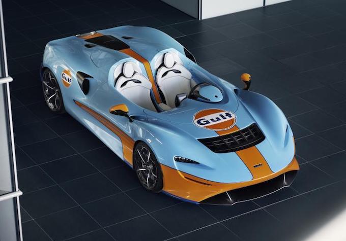 這一次,為慶祝麥拿倫與Gulf的全新合作,雙方推出了限量版塗裝車型——4.0T Gulf Theme By MSO塗裝限量版麥拿倫Elva將採用Gulf標示性的藍色塗裝,點綴黃色標識,由MSO部門打造,售價142.5萬英鎊。用戶可以直接從工廠預定這一特別版車型。另外,在部分賽事中,麥拿倫賽車也會使用Gulf經典樣式進行塗裝。