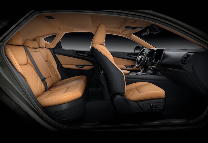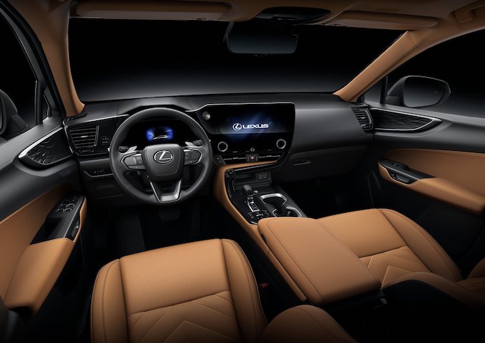 全新一代NX提供多樣化的內室配色方案選擇,包括搭配橙色裝飾縫線的黑白撞色方案,強化座艙動感與科技感氛圍。全新開發的方向盤延續了LEXUS經典造型,電子換擋杆支援線控換擋功能,追求觸感優異的造型設計的同時,也更符合人體工學。