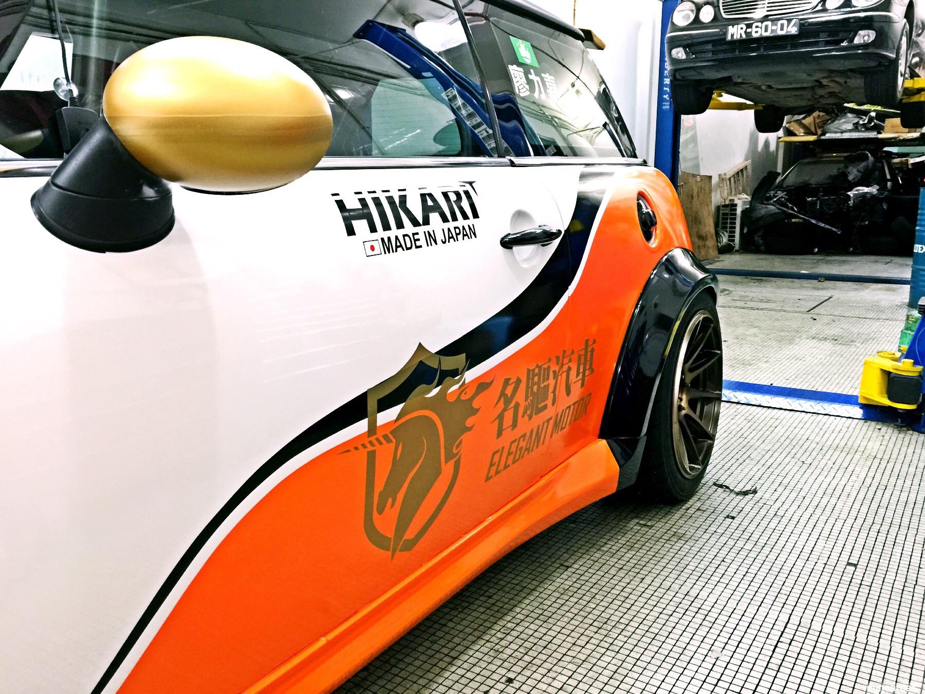 本公司贊助本屆澳門格蘭披治大賽車 澳門電訊杯之賽車Mini Cooper 1.6T。 特別設計之車花搭配Glass coating立刻令到賽車明亮特出。